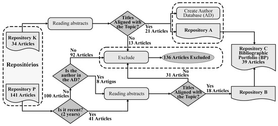 According to [26,27], using this methodology as the primary tool to structure the BP aims to ensure its methodological foundation, based on the topic of interest, while considering the delimitations and restrictions of the articles that compose this portfolio. This establishes its scientific relevance and alignment with the research topic, based on the axes composed of combinations of KWs.