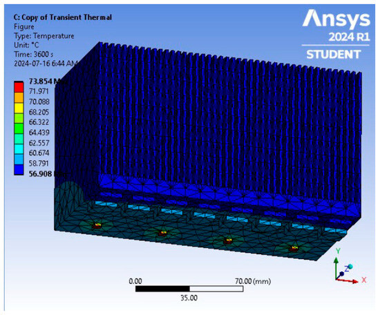 In conclusion, the results demonstrate that a well-optimized heatsink design, incorporating the appropriate combination of fin geometry, spacing, and cooling fan placement, can significantly enhance the thermal management of power electronic devices in Level 1 EV chargers. This research contributes valuable insights into designing and optimizing cost-effective and thermally efficient heatsinks for EV applications.