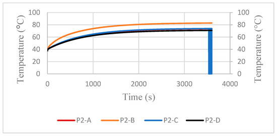 Figure 14 compares the maximum temperature distributions for model P2’s four configurations over the entire simulation iteration.