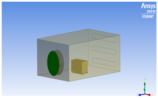 The switching and conduction losses of MOSFETs and diodes in EV chargers can quickly heat them beyond their specified maximum allowable junction temperatures (Tj-max), causing component failure and even fires. Therefore, since most of the heat is typically generated by these switching devices, it is imperative to properly design the heatsink to maintain the junction temperature of the components below safe thresholds [7,8]. The use of heatsinks has become one of the viable alternatives for the thermal management of power electronic devices. The heatsink model shown in Figure 1 also delineates a passive heat exchanger, which transfers the heat generated by the heat source using air as the cooling medium to the ambient environment. The generated heat dissipates from the device, preventing device or component failure. Because the performance of heatsinks is influenced by air velocity [9], the type of material [10], material properties (high thermal conductivity, specific heat, density, etc.) [11], design geometry [12], and surface finishing [13], in this study, the best-performing heatsink design was selected by optimizing the design parameters under naturally cooled and forced convection conditions using the ANSYS simulation tool.