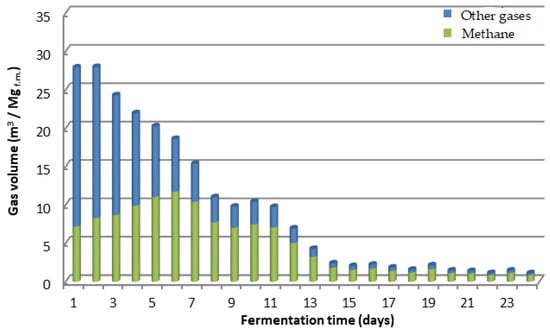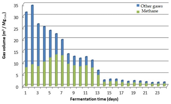 Based on the measurements, the graphs on the daily biogas and methane yield were made (Figure 2 and Figure 3).