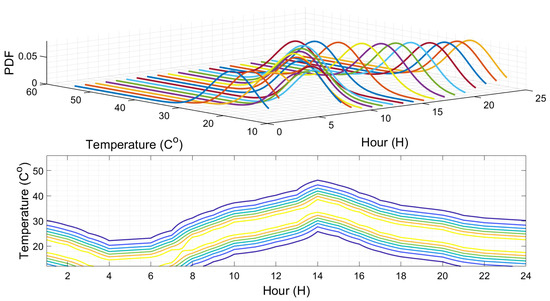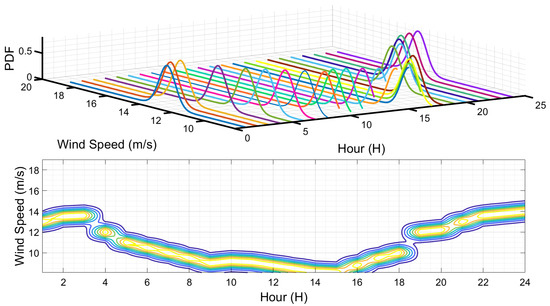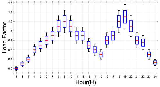 This distribution relies on two key parameters: , signifying the shape parameter, and , representing the scale parameter. Likewise, the variability in electrical load predictions is captured through a normal PDF. For a deeper understanding of modeling methodologies and pertinent parameters, please consult [35].