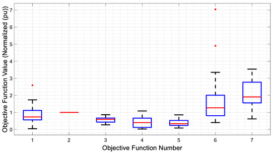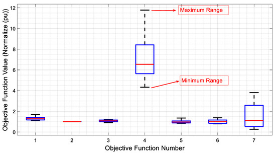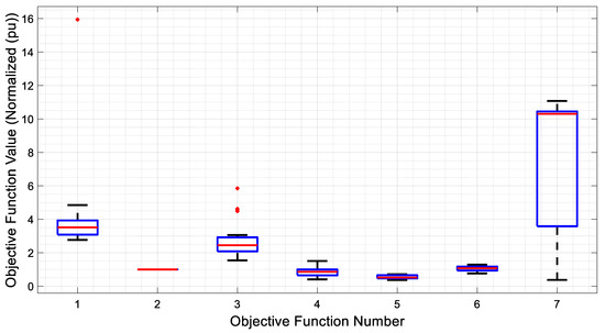 In this framework, the weights assigned to each objective, like cost reduction, reliability, and power quality, are dynamically adjusted based on the operational context and the system’s current state. The allocation of these weights is designed to prioritize specific objectives depending on the nature of disturbances or operational conditions. For example, during periods of load fluctuations, the system prioritizes cost reduction and reliability to ensure efficient operation, stability, and minimized costs. In contrast, during cyber–physical attacks or other disruptive events, the framework emphasizes resilience and stability to mitigate the impacts of such events, ensuring that the system remains secure and responsive.