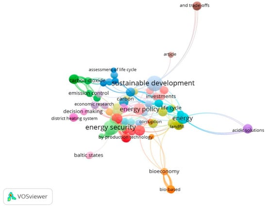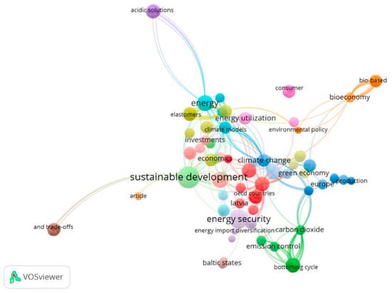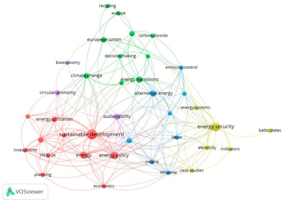 Keywords: “World energy trilemma” and “Renewable energy”. The figure shows the author’s analysis, via VOSviewer). Thirty-two documents were found—period 2018–2024 in the Baltic States [24].