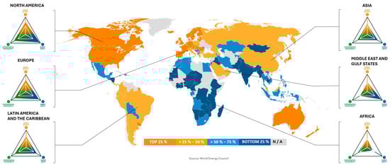 Countries’ performances according to the World Energy Trilemma Index 2024 [31].