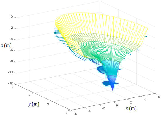 The final shape of the optimisation process, with a draft of 10 m and a radius of 5 m.