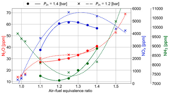 NOx, NH3, and N2O emissions from an SI engine [29].