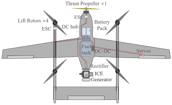 2.1. The Layout of the UAV and Its Hybrid Powertrain
