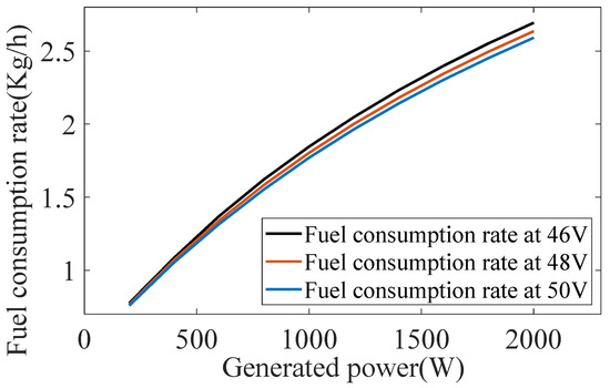 The fuel consumption rate of the ICE–generator combination is determined by conducting tests on the testbench, as illustrated in Figure 9. The DP algorithm generates a power sequence versus time, considering both fuel consumption and charging rate, in order to meet the demand for charging. The overall strategy involves initiating the charging process first and then following with fluctuations according to the required power sequence.