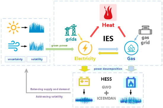 The remainder of this study consists of the following. Section 2 introduces the power distribution method of the hybrid energy storage system, the energy management strategy of the electro-gas system, and the modeling of key equipment in the electrothermal system. Section 3 details a multi-objective planning optimization model for a hybrid energy storage-based multi-timescale integrated energy system. Section 4 analyzes a simulation study using a park in Shanxi Province, China, as an example. Section 5 presents the conclusions.