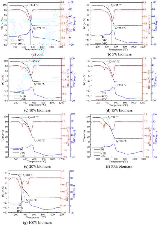 - Dong, L.; Huang, X.; Ren, J.; Deng, L.; Da, Y. Thermogravimetric assessment and differential thermal analysis of blended fuels of coal, biomass and oil sludge. Appl. Sci. 2023, 13, 11058. [Google Scholar] [CrossRef]