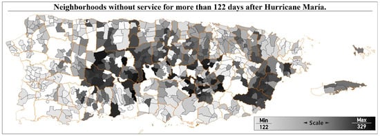 Figure 2 highlights neighborhoods where customers were without grid service for more than 122 days after Hurricane Maria.
