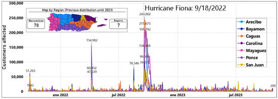 For this reason, a search for information routinely provided by LUMA, which is available online, has been carried out to examine its evolution, in general, through reliability indicators, the number of impacted users, and the restoration of service for the most relevant event during the LUMA period between 2021 and 2022: the arrival of Hurricane Fiona on the archipelago in September 2022.