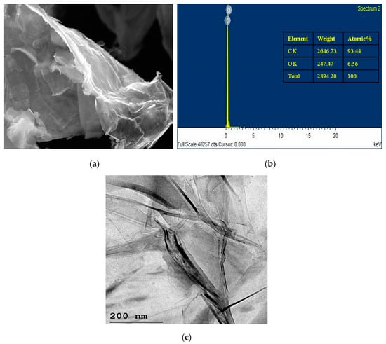 Graphene analysis using (a) FESEM, (b) EDS, (c) TEM.