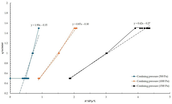 X-axis representing (A∙∆P)/(μ∙L). The vertical