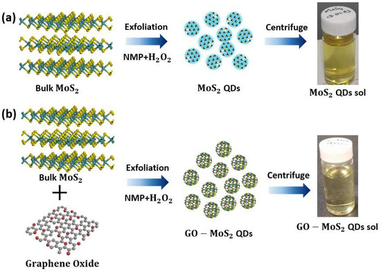 2.2. Synthesis of MoS2 and GO–MoS2 Quantum Dots
