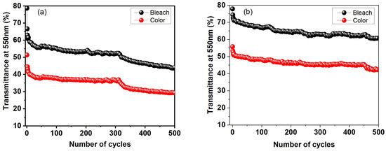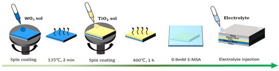 - Park, H.S.; Park, S.; Song, S.H.; Dao, T.T.; Tran, H.V.; Lee, S.I.; Han, C.H.; Cho, C.H.; Hong, S. Effects of Ti-doping amount and annealing temperature on electrochromic performance of sol-gel derived WO3. RSC Adv. 2022, 12, 17401–17409. [Google Scholar] [CrossRef]