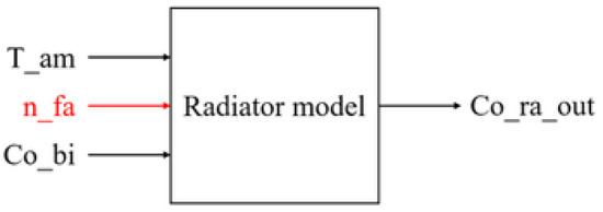 The radiator model was applied to dissipate the excess heat generated by the stack. The input and output of the radiator model are shown in Figure 4.