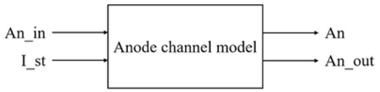 The input and output of the anode channel model: An_in includes the gas flow rate, pressure, and temperature of the anode inlet; I_st is the loading current of the stack; An/An_out includes the gas flow rate, pressure, and temperature of the anode channel/outlet.