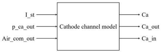 The cathode channel model was applied to calculate the cathode reactant flow rate, pressure, and temperature of the cathode channel and cathode channel outlet.
