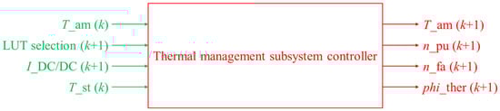 The thermal management subsystem controller shown in Figure 15 provides the ambient temperature, pump and fan speeds, and opening of the thermostat to the CAN Out and thermal management subsystem module.