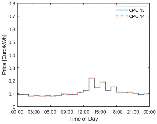 - If there are hours when the CPO has lower or equal prices than the local competitor, the CPO randomly picks one of these hours. With probability 0.5, the CPO increases the price for this hour by or, if it results in a higher price, to the competitor’s level; otherwise, it increases the price for the hour by or, if it results in a higher price, to the local competitor’s price minus .