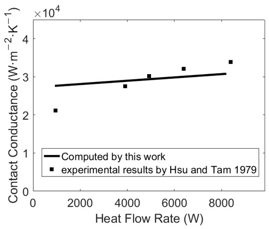 We conclude this section by discussing the applicability of the qualitative response patterns. As shown in the theoretical analysis above, obtaining these qualitative patterns does not require assumptions about material properties, surface properties, or geometric parameters, which greatly enhances the generality of our findings. Furthermore, by analyzing Equation (14) for outward heat flow and Equation (16) for inward heat flow—key equations in our analysis—it becomes apparent that the impact of most parts of the model is encapsulated in the coefficients , and if these parameters do not vary significantly with temperature or heat flux, they will not alter the qualitative patterns. Therefore, any model that considers contact pressure as one main positive influencing factor ( proportional to ) can yield similar results. This makes the specific choice of model less critical for the overall objectives of this study. However, this does suggest a limitation of this work: if contact pressure is no longer a major positive influencing factor of TCC—such as when gas gap conduction or radiation dominates, or for materials that respond differently to pressure—then the qualitative patterns no longer apply.