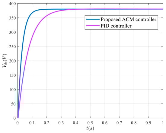A proportional-integral-derivative (PID)-based cascaded control system may not adequately provide fast transient responses and could negatively impact voltage quality []. In addition, the time-consuming process of tuning PID parameters complicates its usage. Although PID-based cascaded control systems are designed to optimise transient responses, they often result in higher overshoot due to tuning issues, leading to significant variations in DC bus voltage [,,,]. Additionally, the output current and voltage fluctuations caused by this controller compromise system stability and prolong battery response time.
