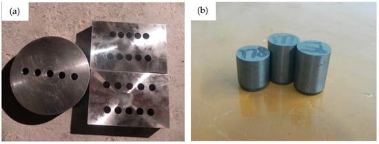 During the drilling process of high-temperature geothermal wells, the phenomenon of tooth loss in roller bits seriously affects drilling efficiency and equipment life. In order to reduce the failure rate and extend the service life of the equipment, this study proposes a new method for testing the strength of tooth fastening and conducts relevant experimental research. Through experiments, the influence of factors such as temperature, tooth diameter, and tooth-hole spacing on the tooth fixation strength of roller drill bits is analyzed in depth. The goal is to grasp their inherent laws and provide a scientific basis for optimizing the design of roller drill bits. The roller base material used in the experiment is 20CrMo, and the tooth material is YG16C. Both materials are provided by Henan Hard Alloy Company in China (Zhengzhou Hard Alloy Company, Henan Province, China), and the material specifications and performance indicators are determined according to experimental requirements. A procurement contract is signed with the supplier to clarify the quality standards and delivery time. Strict quality inspection shall be conducted before delivery to ensure that the materials meet the experimental requirements. The processed base and teeth, prepared according to the experimental requirements, are shown in Figure 2. The properties of the base and cutting tooth materials are listed in Table 1.