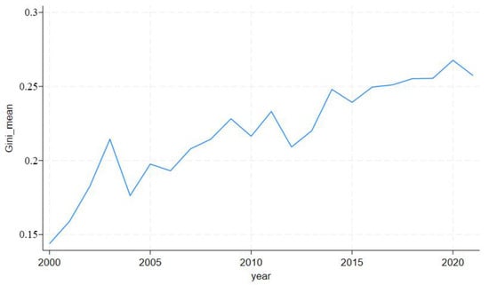 The study sample consists of 256 cities at the prefecture level and above in China, spanning the period from 2000 to 2021. Carbon emissions data were sourced from the latest version of the EDGAR v8.0 database (https://edgar.jrc.ec.europa.eu/report_2023, accessed on 8 September 2023), specifically utilizing its high-resolution fossil energy carbon emissions grid data at a spatial granularity of 0.1° × 0.1°. These grid-level data were aggregated to the city level based on the geographical coordinates of each region, ensuring precise alignment with urban boundaries. Urban characteristic data were obtained from multiple authoritative sources, including the China Urban Statistical Yearbook, relevant field-specific statistical yearbooks, and the annual statistical bulletins on national economic and social development published by individual cities. To further enhance data accuracy, the study leverages county-level data as the foundational unit for carbon equity calculation, which was then aggregated to the city level. This approach ensures a high degree of granularity and precision in the emissions estimates.
