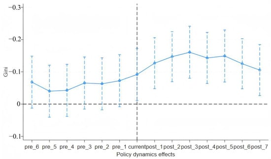 Columns (1) and (2) in Table 1 present the results of the data analysis based on the baseline regression model. In Column (1), the regression introduces only the policy variable did, while controlling for time and individual fixed effects. The estimated coefficient is 0.032, which is significant at the 5% significance level, suggesting that the transition of the energy system led to a worsening of carbon inequality. Comparing the statistics of the data within the sample, the mean value of the Gini coefficient within the sample is 0.344, which means that the implementation of the policy correspondingly brought about a rise in inequality within the region of about 10 percent. In Column (2), we further incorporate additional control variables and account for both time and individual fixed effects in the regression model. The coefficient on the core explanatory variable remains at 0.027, which is statistically significant at the 10% significance level. This result is highly consistent with the findings in Column (1), reinforcing the robustness of the relationship between the key variable and the outcome. These findings suggest that the transition may have overlooked the equity of carbon emission controls. Considering the common ecological impacts across regions, urban policies do not appear to be equitable in balancing economic development rights and environmental protection responsibilities within cities [].