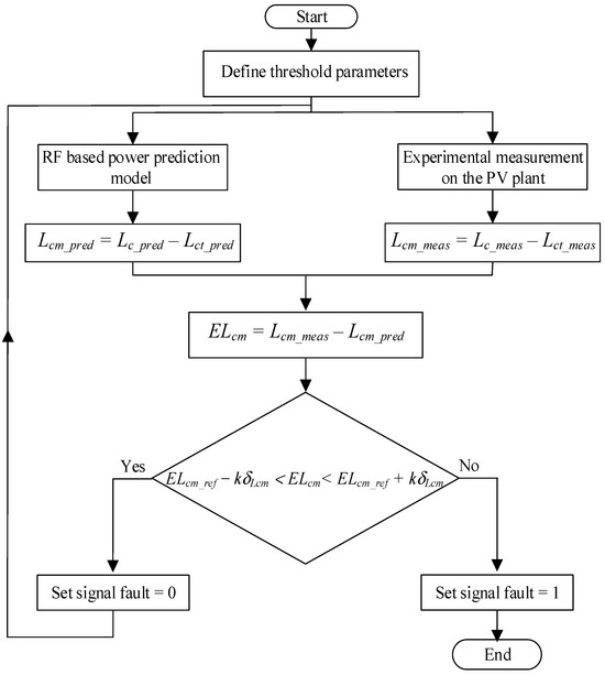 Figure 5 presents the flowchart of the fault detection procedure, illustrating the decision-making process for fault identification based on the analysis of the miscellaneous loss error between the actual power measurements and the predicted power by the RF model.
