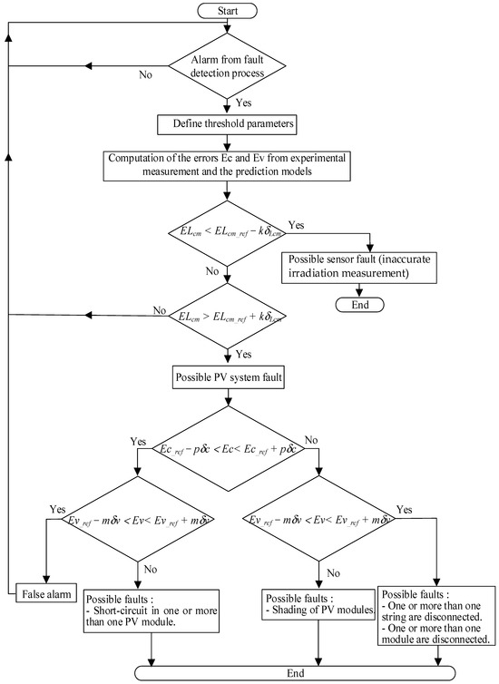Considering this, the diagnosis method aims first at identifying if the fault is actually affecting the PV system or if it is only due to sensor malfunction. This partition is performed through the analysis of the miscellaneous capture loss error deviation outside the threshold band as follows: