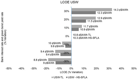 Focusing on this crucial last point, technical-economic evaluation strategies such as the levelized cost of electricity (LCOE) can significantly aid in decision-making. The LCOE is widely used to assess the economic viability of power generation projects. It expresses the constant price of electricity (USD/kWh) required to achieve a net present value of zero throughout the lifetime of a project. However, LCOE calculations often exclude externalities and regulatory incentives such as income tax deductions, grace periods, and accelerated depreciation, all of which can significantly affect project costs [10,29]. Financial tools such as discounted cash flow (DCF) and real options (RO) have been proposed to complement LCOE by incorporating uncertainty and qualitative elements [12,30,31].