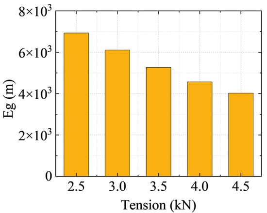 Figure 6 presents the trend of root mean square displacement variations under different tension levels. It can be observed that as the tension increases, the vibration amplitude of the conductor decreases markedly. This phenomenon indicates that higher initial tension effectively enhances the conductor’s stiffness, thereby suppressing wind-induced vibrations. However, the suppression effect is not linear; beyond a certain threshold, the influence of increasing tension on reducing vibration amplitude begins to level off, indicating a saturation effect.