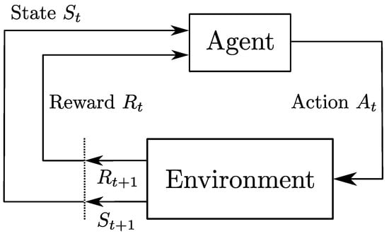 RL is a machine learning (ML) paradigm that focuses on learning how to act optimally in an environment through a trial-and-error approach (Figure 1 shows the main working principles). A fundamental aspect of RL lies in its dependency on the Markov property. It asserts that the current states solely determine the future states of the system. The intelligent decision-maker, often referred to as the agent, interacts with elements external to it, namely the environment. The agent interacts with the environment by taking actions a, and these actions result in rewards r, typically represented as numerical values, which indicate the quality of the agent’s decisions. Positive rewards are associated with favorable actions, while negative rewards correspond to unwanted ones. The positions assumed by the agent in the environment are known as states s. When the agent, at time step t, performs an action, it receives a reward and moves from state to state .