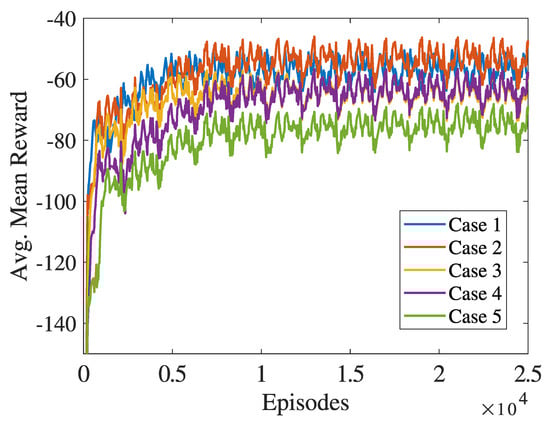 The TD3 algorithm is characterized by six different neural networks. These have been modeled as simple MLP networks with a number of inputs equal to the number of observations and a number of outputs equal to the number of actions. Case 1 is characterized by 6 hidden layers with (2000, 1000, 1000, 500, 400, 300) neurons. Cases 2 and 3 have 7 hidden layers with (2000, 1000, 1000, 500, 500, 400, 200) since the complexity of the problem has increased. Cases 4 and 5 have 7 hidden layers with (2000, 1000, 1000, 500, 500, 400, 300) due to the higher number of actions to be taken. The number of nodes of the NN, as well as other hyperparameters of the neural network, were obtained using an optimization algorithm based on Optuna [31]. Practically, various parameter configurations were tested by training the agent with a fixed network configuration. The configuration that yielded the best results in terms of reward was saved and used for all case studies. The parameters are summarized in Table 2.