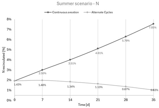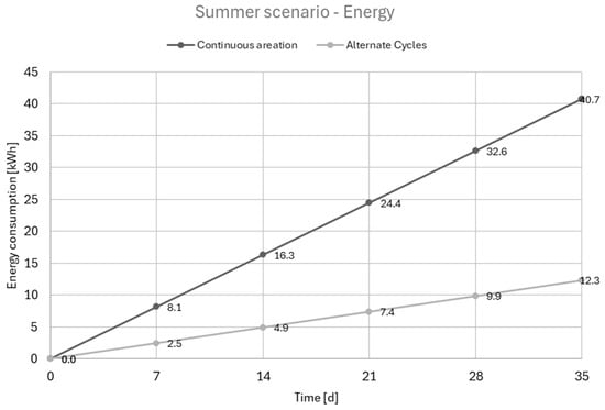 | Difference Between Continuous Aeration and Alternate Cycles (%) | Summer | Scenarios Winter | Autumn/Spring | |||