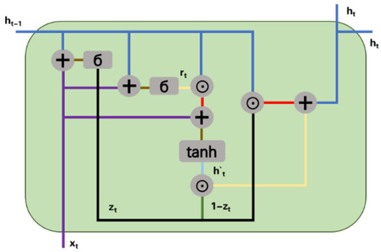 The bidirectional gated recurrent unit (BiGRU) constitutes an advanced multivariate time series forecasting framework built upon gated recurrent architectures. By synergistically integrating bidirectional temporal processing with sophisticated gating mechanisms, this methodology effectively captures both sequential dependencies and multivariate interactions within time-dependent datasets. As a streamlined derivative of Long Short-Term Memory (LSTM) networks, the GRU architecture achieves structural simplification through gate fusion: it consolidates the forget and input gates into a unified update gate, while merging the memory cell and hidden layer functionalities into a reset gate mechanism (Figure 1). This topological optimization results in fewer trainable parameters and lower computational complexity compared to LSTM, while demonstrating enhanced performance in capturing long-term temporal dependencies [15,16].