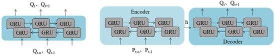 Traditional GRU structure (left); seq2seq structure (right).
