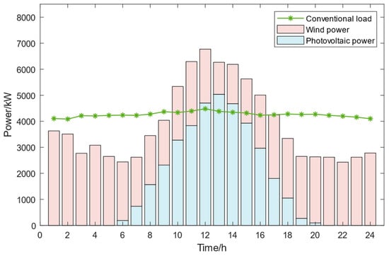 - Voltage offset constraintswhere is the voltage offset during grid operation; N is the number of load nodes; T is the time period; and are the voltage of the ith node and the reference voltage at time t, respectively; is the maximum permissible deviation of the voltage of the ith node; is the maximum permissible voltage offset during grid operation.
