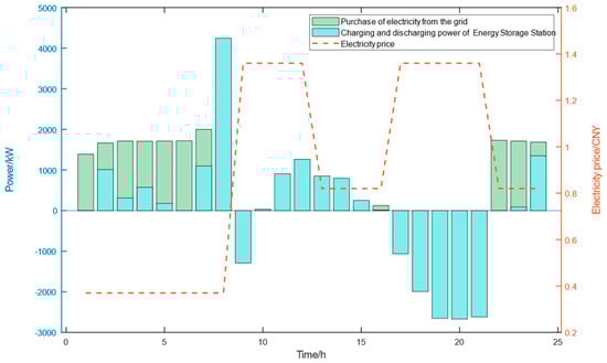 - The multi-objective optimization strategy for the grid ESS proposed in this paper not only improved the utilization efficiency of energy storage resources and enhanced the overall benefits of the system, but also obtained the scheme that minimized the operating costs of the grid and the configuration costs of the ESS. The results indicate that compared with Scenarios 1 and 2, the operating costs in Scenario 3 were reduced by 33.6% and 2.35%, respectively. Furthermore, the revenue of the energy storage station in Scenario 3 was 7.6% higher than that in Scenario 2.