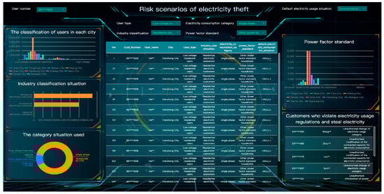 - In terms of management benefits: After deploying the User Electricity Anomaly Detection Tool developed by the method proposed in this paper (Figure 6), on one hand, user electricity consumption data can be obtained through the Power Information Collection System (Figure 7), and on the other hand, a list of high-probability users can be obtained through electricity theft risk scenarios (Figure 8). In contrast, the State Grid Shaanxi Electric Power Company conducted a marketing survey on 18,710 low-voltage users in a city using traditional manual experience methods, deploying two inspectors per day for 75 days, and identified a total of 5 electricity theft users, with an electricity theft detection rate of only 0.07%. After using the User Electricity Anomaly Detection Tool based on the method proposed in this paper, a total of 190,000 low-voltage users were analyzed, identifying 7 electricity theft users and 2 metering anomaly users, with an abnormal electricity detection rate of 51.16%, which is 730.86 times the manual detection rate. Both the time and personnel required were significantly reduced compared to traditional household-by-household inspections, thereby substantially saving labor and material resources while enhancing operational efficiency.