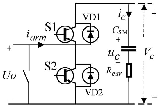 Submodule critical data primarily consist of the submodule capacitor voltage and arm input current, as shown in Figure 3. Through analysis of the short-timescale dynamic behavior of UPFC submodules, the mathematical representations of these critical data characteristics can be derived through the integration of switching functions with the KVL equations governing the upper and lower converter arms.