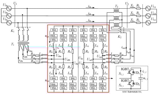 Three-phase MMC-UPFC topological schematic diagram.