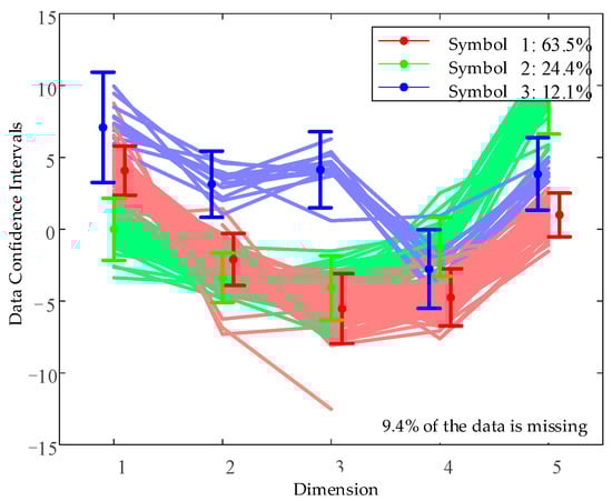 The missing data ratio for three-category symbolic data was controlled at 9.4%, with confidence intervals of 63.5%, 24.4%, and 12.1%, respectively, as illustrated in Figure 17.