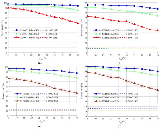 Comprehensive multi-scenario testing results comparison using SE and robust SE-based fault localization methods. (a) 1.0; (b) 0.35~0.45; (c) 0.45~0.55; (d) 0.75~0.85.