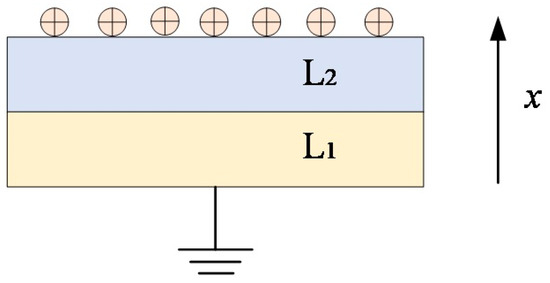A one-dimensional coordinate along the x direction was set up by our research group to investigate the charge carrier transport in the two-layered insulating medium, as is shown in Figure 1. x = 0 corresponds to the interface between the grounded conductor and insulation, while x = L, with L = L1 + L2, corresponds to the interface between the air and insulation.