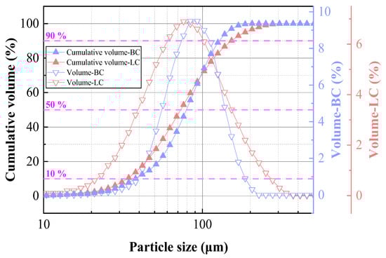 In this study, Shenmu bituminous coal (BC) is primarily selected as the experimental fuel due to its excellent fuel property. Simultaneously, to further investigate the fuel adaptability and expand the relevant conclusions, a typical lean coal (LC) produced in Shanxi Province, China is selected as the comparative fuel. The proximate and ultimate values of BC and LC are shown in Table 1. Figure 3 shows the particle size distribution of BC and LC. The particle size range of the two coal types was controlled within 0~0.18 mm through screening to meet the coal fineness requirements of general power stations, and the particle sizes at cumulative volume fractions of 50% (d50) are 78 μm and 74 μm, respectively.