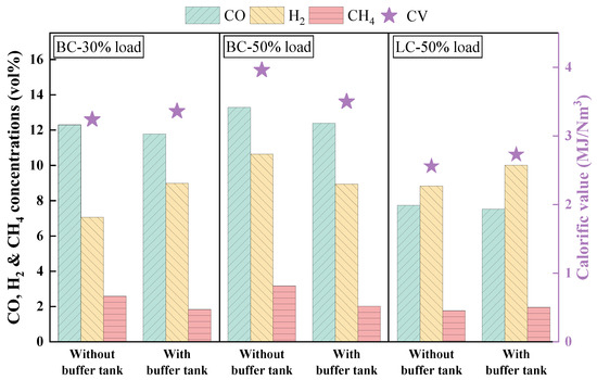 Principal components and CVs of the combustible gas with/without the buffer tank.